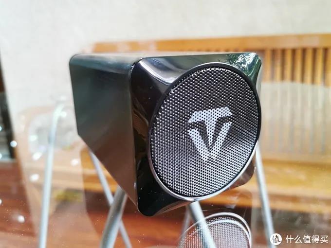 相對(duì)地另一端是藍(lán)牙音箱的喇叭,用一塊鋼制網(wǎng)罩保護(hù)著。網(wǎng)罩上印著天逸的logo。細(xì)膩密致的鋼制網(wǎng)罩,能夠有效柔化高頻毛刺感,讓聲音更加均衡動(dòng)聽。