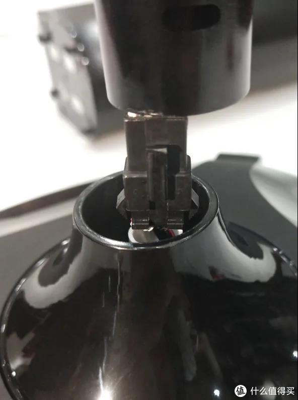 然后連接底盤和支架的鎖扣,將支架插入底盤,再旋轉(zhuǎn)支架,緊扣支架與底盤。