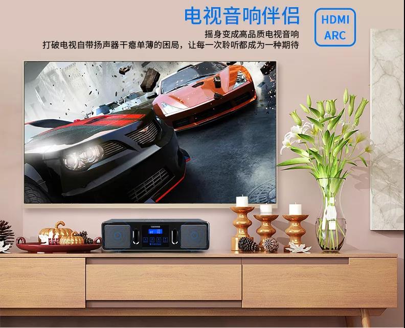 只要您家的電視機(jī)支持HDMI-ARC音頻回傳,可以用HDMI線通過(guò)ARC音頻輸入接口將電視音頻傳輸?shù)絋Y-B03,搖身一變高品質(zhì)電視音響,打破電視自帶揚(yáng)聲器干癟單薄的困局,提升聆聽(tīng)體驗(yàn)。