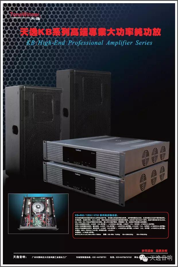 外觀造型、電路和用料、加工工藝等,都是天逸專業功放系列中最高端的精品。本系列產品分為多個型號:最具代表性的有KB-900、