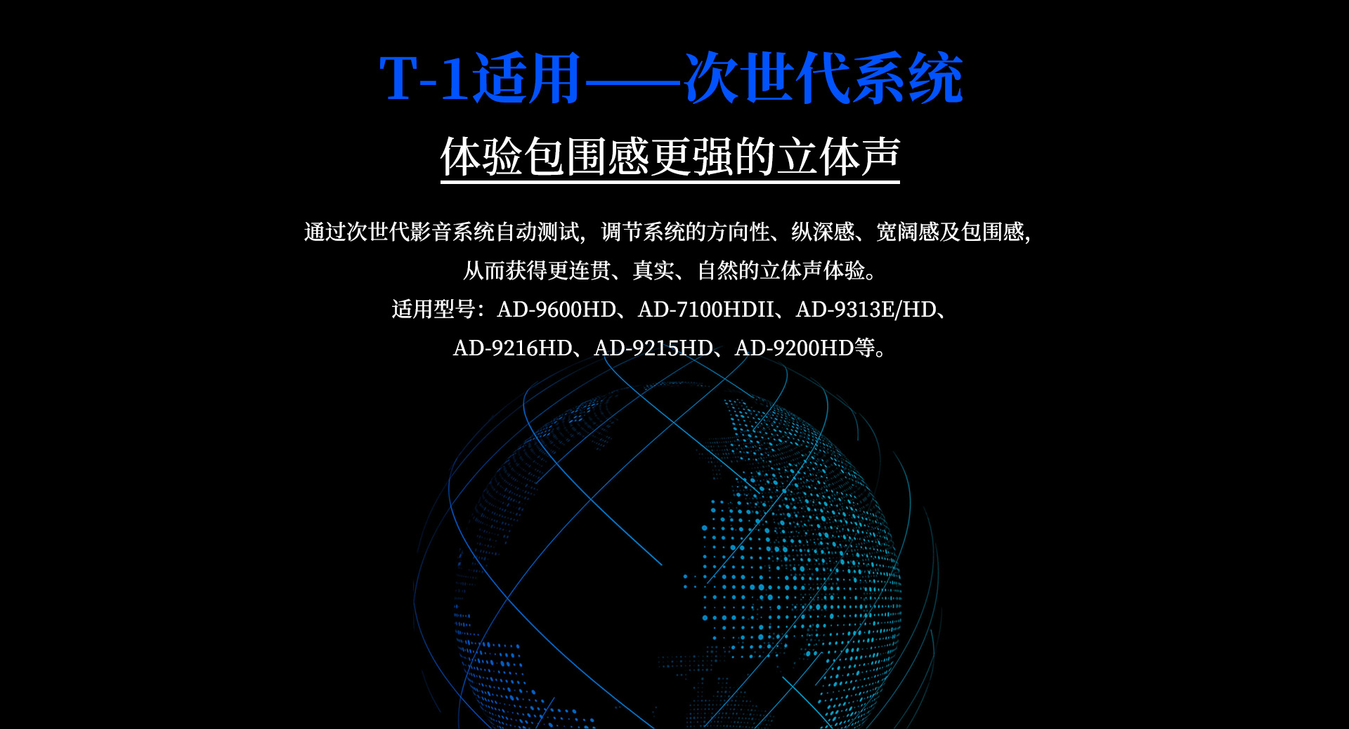 使用方法:將測試話筒與功放連接好之后,將話筒置于“皇帝位”;通過功放菜單進入“自動測試狀態”,期間要保持房間安靜;靜待系統自動完成聲場校正(全程約1-3分鐘),直至提示“測試完成”即為完成校正;根據功放OSD菜單提示點擊“應用”,保存參數后即可應用至當前聲場音效中。 T-2適用于AT-2000、AT-2180、AT-2300、AD-7300HD等全景聲影K功放。