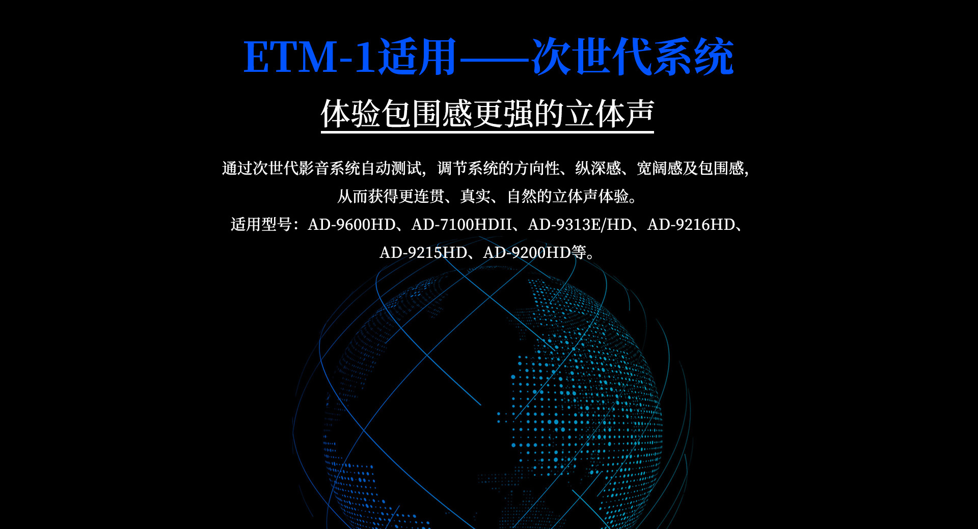 ETM-1音頻測試話筒是專門用于聲場音響效果自動測試的話筒,配合高清解碼功放及DSP聲場處理設備等的聲場自動測試功能,能夠很快很好的自動完成各聲道的智能房間聲學特性掃描功能;啟用智能房間聲學特性掃描可以自行選擇設定最佳的各聲道環(huán)繞聲場音量。可對環(huán)境聲學特性進行拾取分析并自動決定所連接揚聲器的數(shù)量、其用于低音管理的尺寸、重低音揚聲器的最優(yōu)拐點頻率和主要聆聽位置距離等。接著通過捕獲聆聽區(qū)域內的室內噪音在頻率和時間閾兩方面的問題來消除因室內噪音而導致的失真。 從而讓每個人都能聽到清晰正常的聲音。