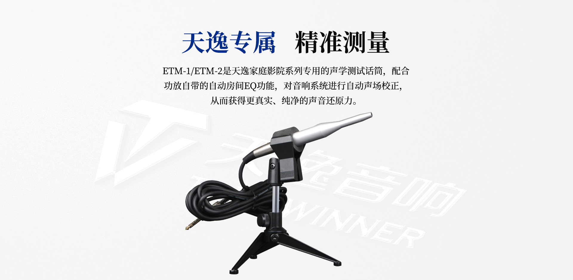 ETM-1/ETM-2是天逸家庭影院系列的專業級聲學測試話筒。其纖細的筒體狀外表使聲音指向性更強,測試數據更精準。ETM-1/ETM-2測試話筒在對房間進行聲學特性拾取后,搭配功放自帶的自動房間EQ功能,在自動識別音響系統狀況后進行自動聲場校正,獲得更精準的音頻定位,帶來更真實的臨場體驗。ETM-2適用于全景聲校正,達到專業影院級別的聲學效果;ETM-1則適用于次世代影音系統,能夠體驗更加真實、連貫、自然的立體聲。 使用方法:將測試話筒與功放連接好之后,將話筒置于“皇帝位”;通過功放菜單進入“自動測試狀態”,期間要保持房間安靜;靜待系統自動完成聲場校正(全程約1-3分鐘),直至提示“測試完成”即為完成校正;根據功放OSD菜單提示點擊“應用”,保存參數后即可應用至當前聲場音效中。 ETM-2適用于HD-3000A、HD-3080、HD-3100、AT-200、AT-300等全景聲影K功放。 |