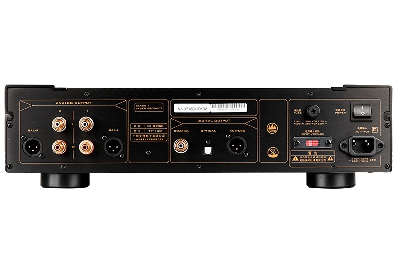 二、用料及電路設(shè)計 TY-1CD的輸出接口均采用24K鍍金端子,能減少金屬接觸面的微動腐蝕,進而減少接觸電阻,增加電流導(dǎo)通性,同時能有效增強信號傳輸?shù)姆€(wěn)定性和完整性,降低信號傳輸中產(chǎn)生的衰減值,避免高衰減值給高低頻信號帶來的不穩(wěn)定,將信號損耗降到最低。 令人遐想的解碼內(nèi)“芯”:采用美國ESS公司的旗艦芯片ES9028,這顆芯片被譽為“業(yè)界最頂級的數(shù)字音頻解碼芯片”,其信噪比高達129dB,總失真低于-120dB,最高支持32bit/384kHz高規(guī)格輸入信號,支持多種高清音頻格式解碼,性能驚人!除此之外,ES9028可以直接通過同軸和光纖傳輸和播放3.078mhz的DOP(DSD,SACD),這是其他解碼芯片所不能及的。ES9028芯片能保證超強解析力,聲音音場比較開闊,真實的現(xiàn)場感和自然的泛音,余音繞梁,音樂味道濃,質(zhì)感很好,低頻表現(xiàn)力強。 性能卓越的運算放大器:I/V轉(zhuǎn)換電路運放采用了TI公司頂級全差分運放OPA1632,能減少偶次諧波,減少共模噪聲干擾,最大限度保證了平衡傳輸信號的高保真性能指標(biāo);而平衡轉(zhuǎn)非平衡電路運放則采用TI公司頂級雙極型運放OPA1612,這是一款高性能、雙通道、雙極輸入音頻運算放大器,失真度低至0.000015%,噪聲密度低至1.1nV/√Hz! 精選高端定制電容:濾波電容采用ELNA大容量高品質(zhì)電容,信號耦合電容采用ELNA音頻專用電容,為松軟富有彈性的低頻、純厚溫暖的中頻、細膩通透的高頻提供強力保證。 高端定制機芯:作為CD機不可或缺的一部分,設(shè)計師在二十多次反復(fù)試驗下,最終選定這款天逸定制的機芯。該機芯整體結(jié)構(gòu)牢固可靠精密,讀碟準(zhǔn)確性高,且外加金屬防震基座,有很好的防震緩沖效果,同時有效抑制對自身和外來震動使光頭讀碟系統(tǒng)減少抖晃,減少誤碼的產(chǎn)生,提高讀碟準(zhǔn)確率。