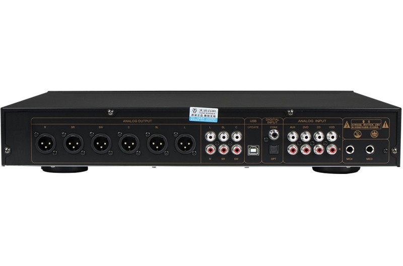 一、整機概述 1.全中文的操作界面,零基礎的操作員都可以調出完美音效; 2.自動防嘯叫印制功能,主動測試嘯叫頻率點; 3.四組兩聲道輸出,可以供更多的前端信號輸入,功能更強大; 4.2組同軸、1組光纖支持發送音樂的輸入,適合挑剔的耳朵; 5.全中文圖畫的EQ曲線設置界面,更加直觀的設置EQ曲線等; 6.專業級的5.1全平衡輸出端口,滿足更加專業的場所使用;