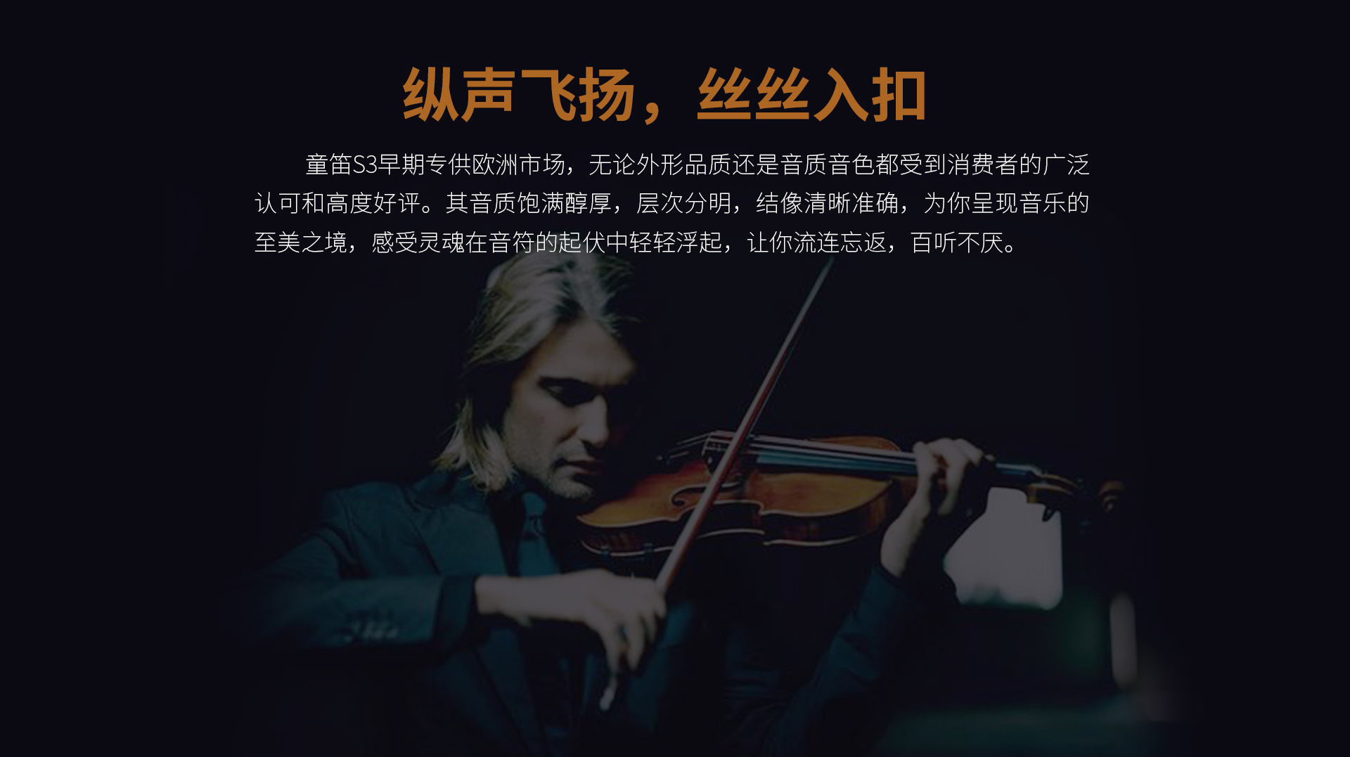 四、聲音特點 童笛S3有著良好的音樂解析力,高頻純凈透明,結像清晰準確,中低頻聲音輻射平滑,寬廣自然,醇厚溫潤。整體聲音優雅細膩、甜美陽光,人聲干凈清澈、飽滿豐厚,對音樂的細節把握良好。