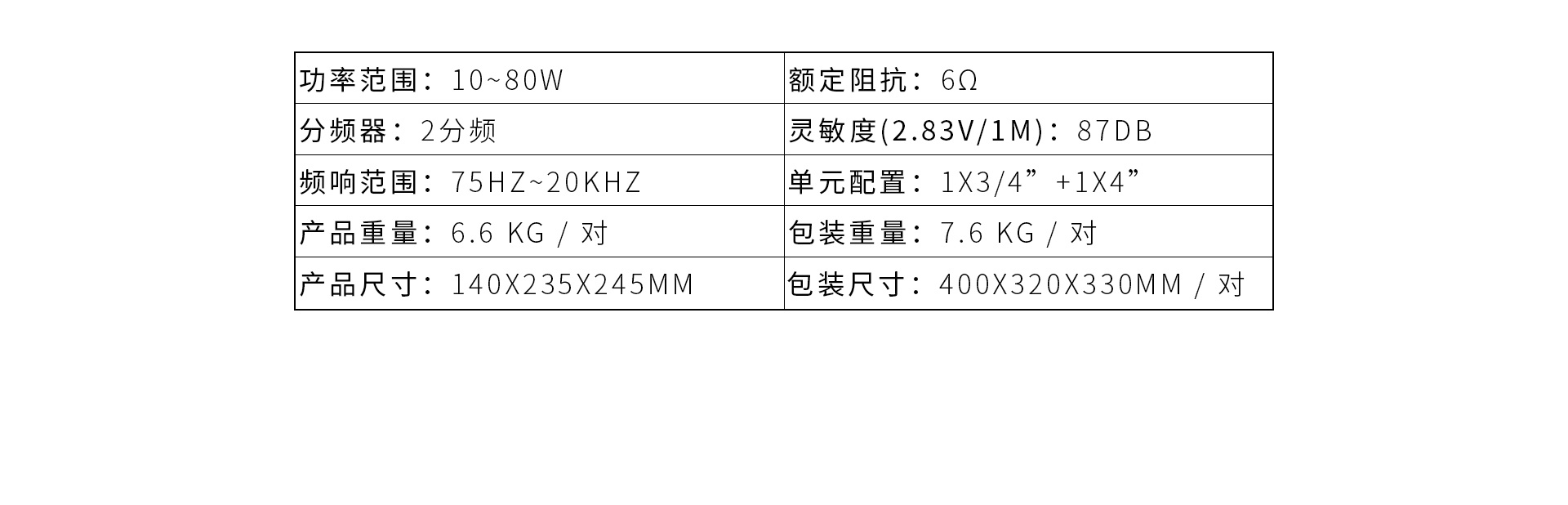 | 單元配置:1×3/4"+1×4" | 靈敏度:87dB |