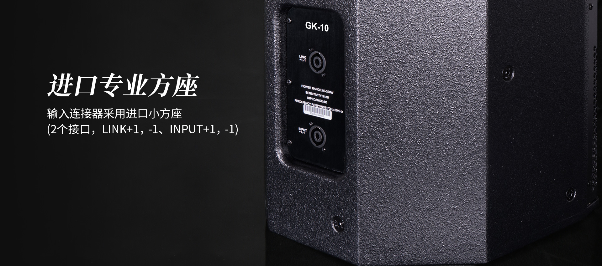 三、產品主要性能指標 產品型號:GK-10 單元配置:1"×1+10"×1 功率范圍:80-320W 指向角度:55°×100° 頻率范圍:70Hz-20KHZ 靈 敏 度:91dB 額定阻抗:6Ω